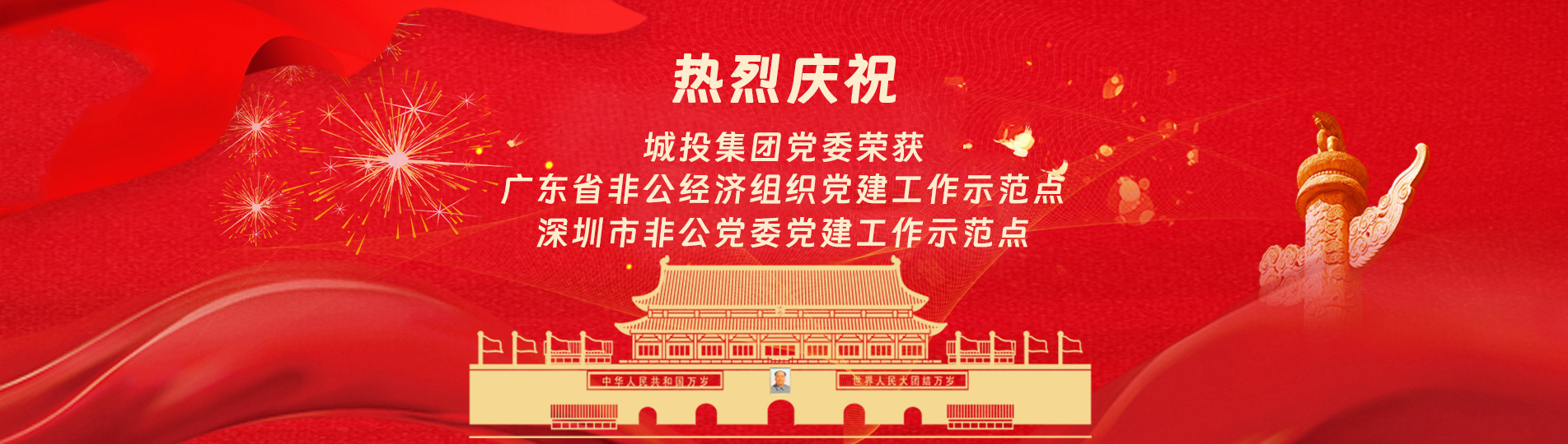 在上級黨委的正確領(lǐng)導(dǎo)下,在城投集團(tuán)的大力支持下,集團(tuán)黨委緊緊圍繞企業(yè)發(fā)展戰(zhàn)略,將黨建引領(lǐng)核心貫穿始終,以“五心”工程(即思政建設(shè)“核心”工程、經(jīng)營發(fā)展“中心”工程、企業(yè)文化“向心”工程、黨建品牌“匠心”工程、服務(wù)基層“愛心”工程)為抓手,大膽探索,勇于突破和創(chuàng)新,不斷形成城投黨建特色,有效輸出城投實踐經(jīng)驗,充分發(fā)揮“紅色引擎”作用,先后獲得“深圳市非公黨委黨建工作示范點”、“深圳市兩新組織黨建工作示范點”、“深圳市文明單位”、“深圳市先進(jìn)基層黨組織”、“廣東省非公有制經(jīng)濟(jì)領(lǐng)域黨建工作示范點”等榮譽稱號。